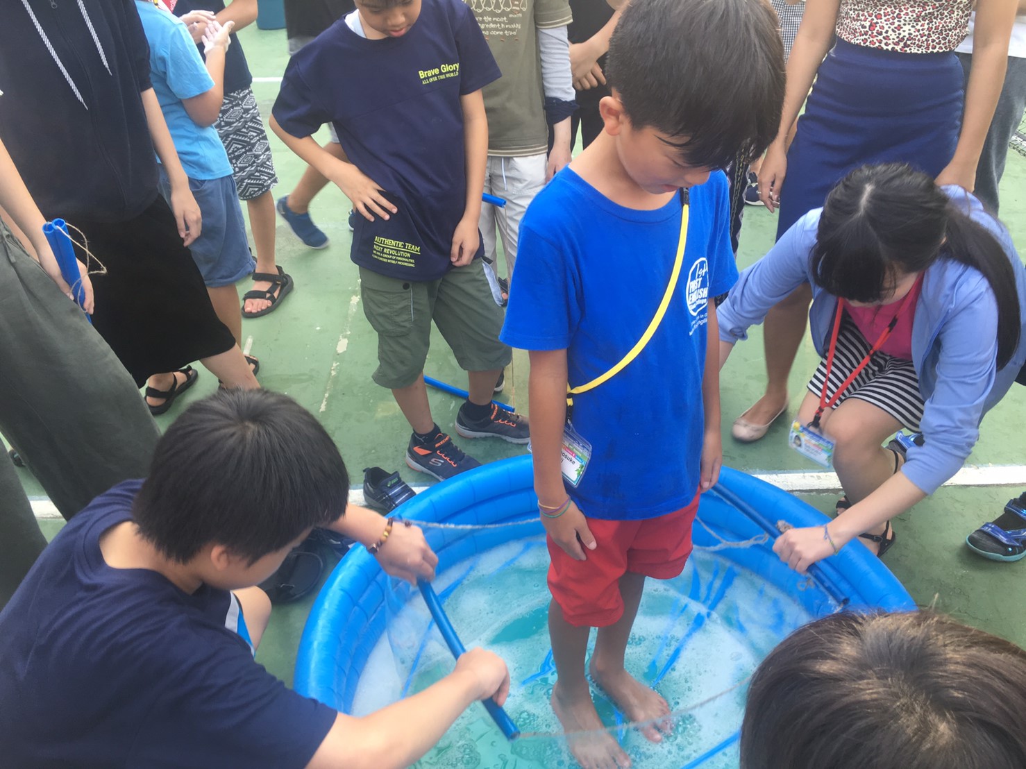 低学年から高学年まで縦割りグループに分かれて5感をフル活用した英語授業です!!