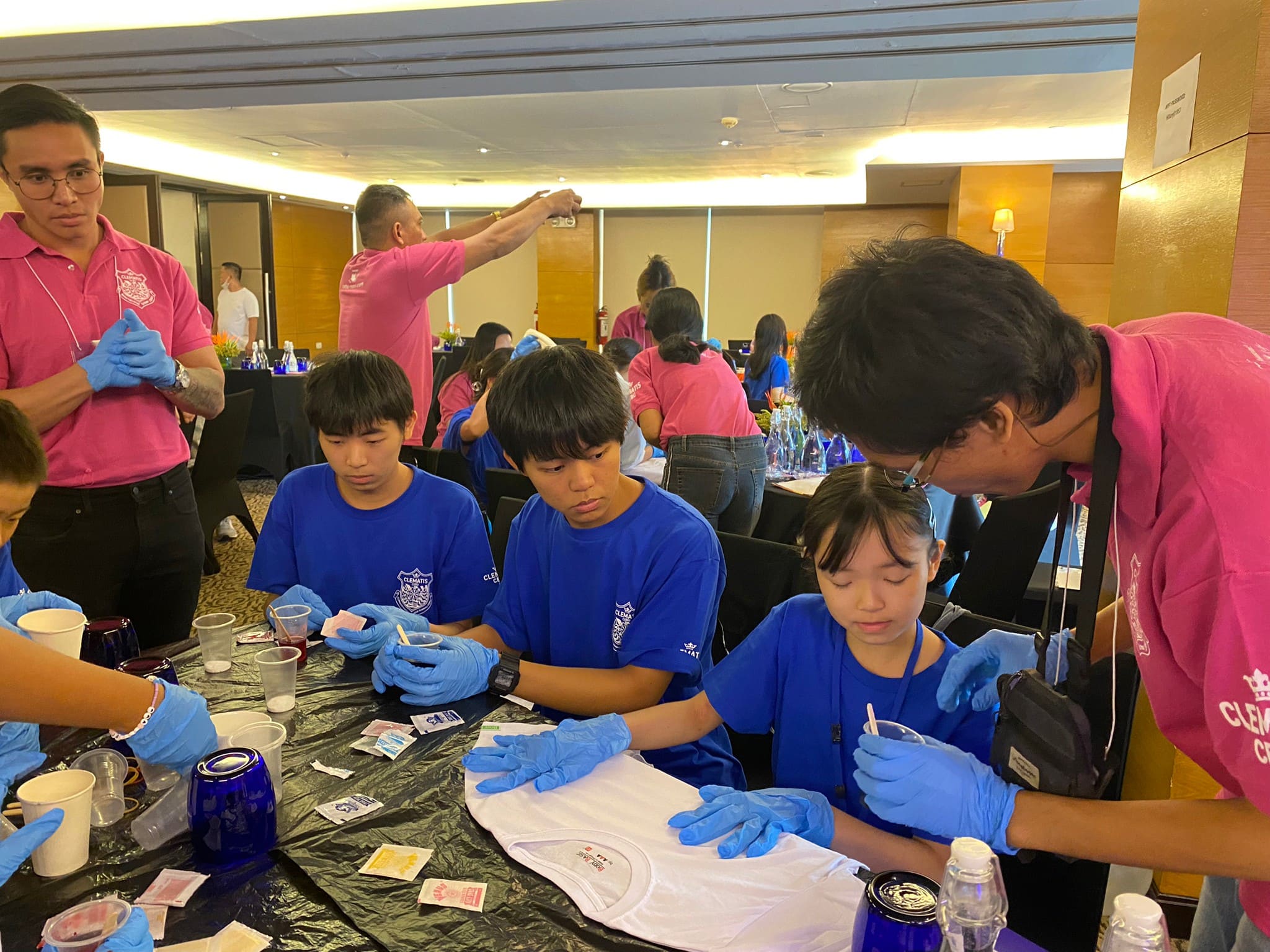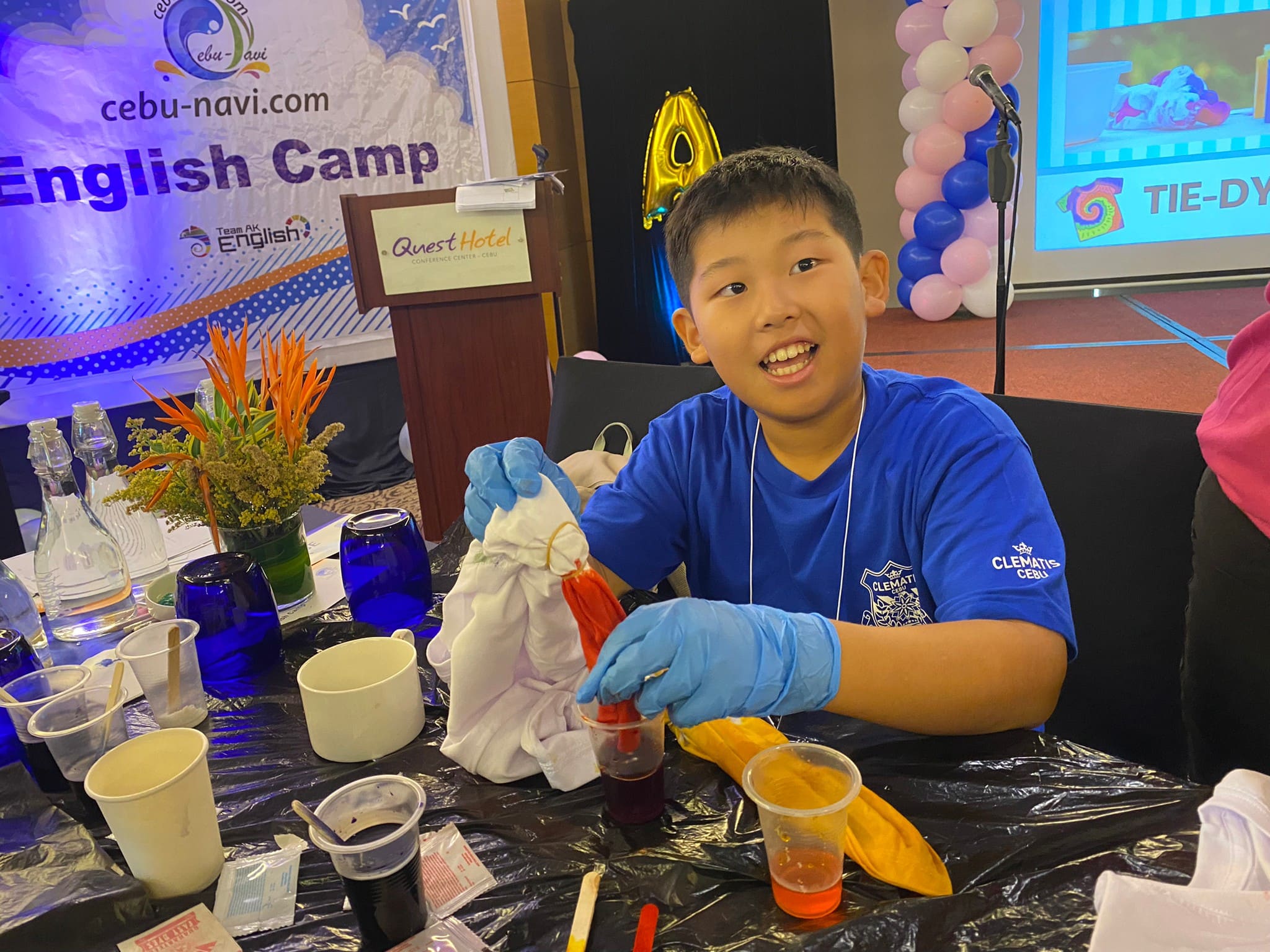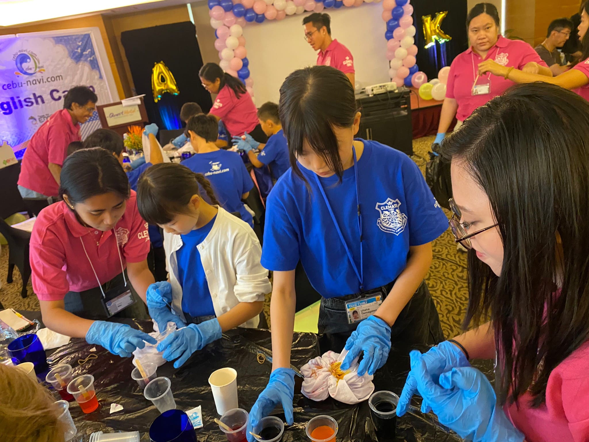 午後からはテイクセブ校恒例のジュニアキャンプ、親子留学で大人気のサイエンスプログラム「Tie-Dye(Tシャツ染め)」でみんなで楽しく思い出作りです!