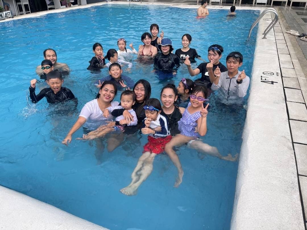 英語講師陣ももちろん加わり、とても楽しくてエキサイティングなプールタイムになりました!