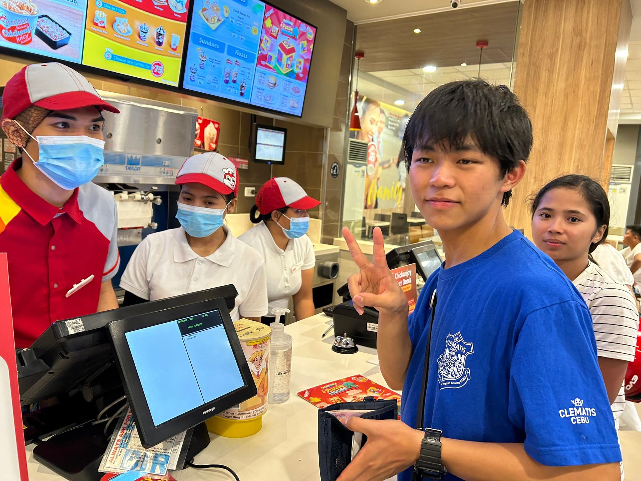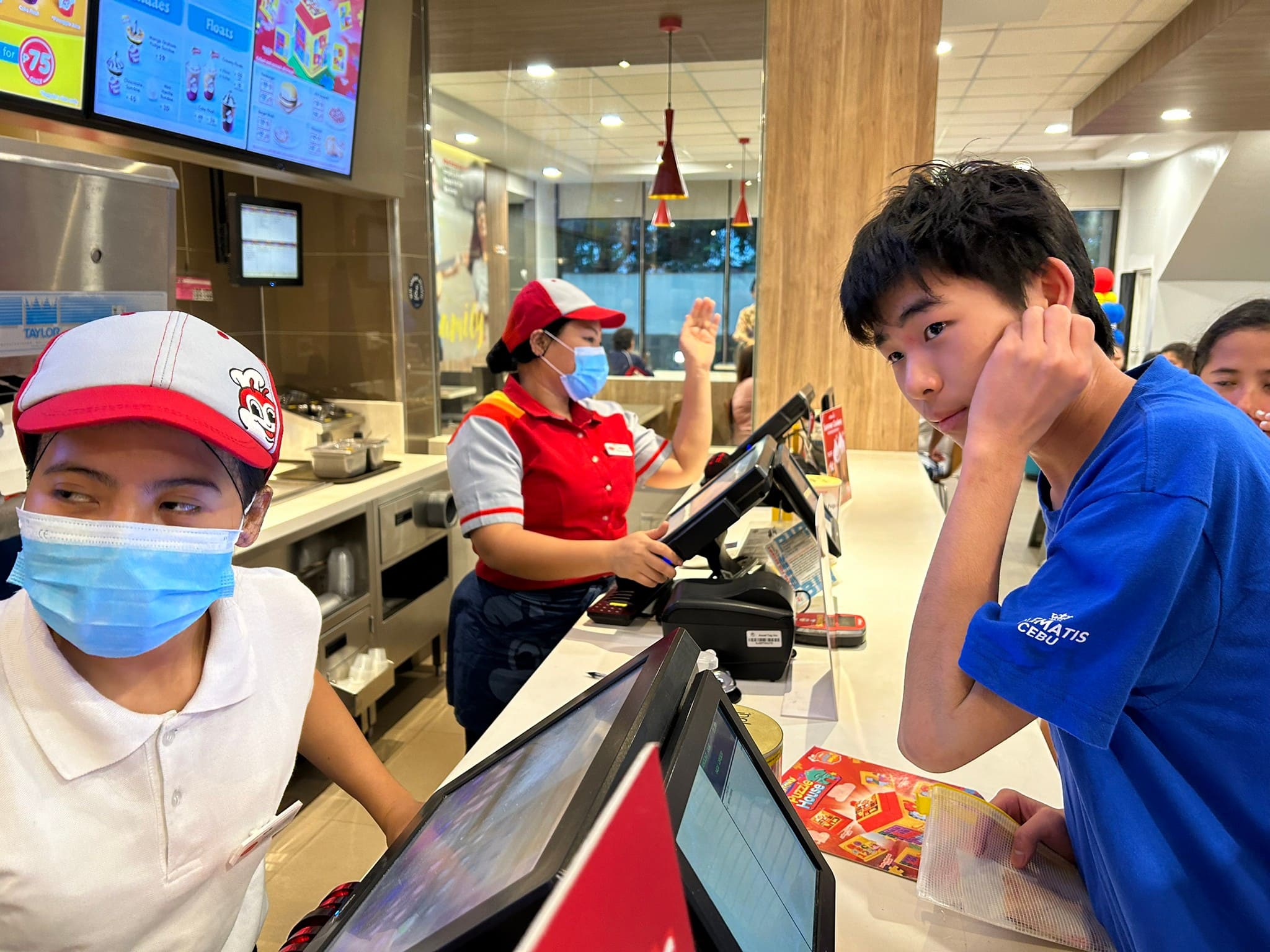 セブ島英語漬けジュニアキャンプの仲間と、英語のコミュニケーションにも慣れてきた頃ですが、次は、フィリピンで大人気の「Jollibee(ジョリビー)」へ行って、ハンバーガーのオーダーにチャレンジ!