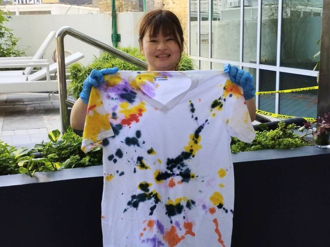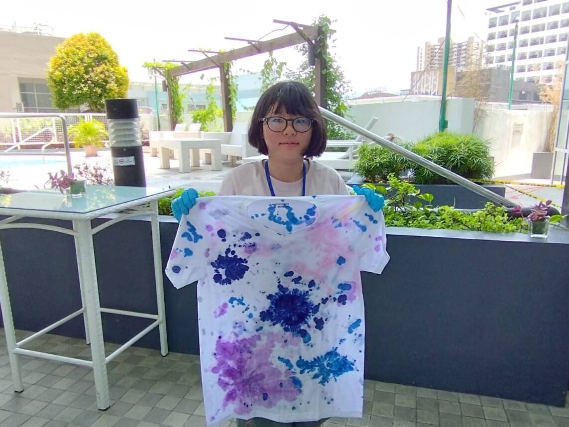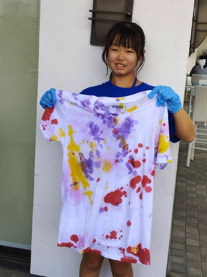 セブ島英語漬けジュニアキャンプ・親子留学は、初日のオリエンテーションの後に、子どもも大人も付き添いの保護者様も全員、白いTシャツと染料で染める「タイダイ染めTシャツ作り」に参加して頂きます。それぞれ個性が光るTシャツは、セブ島留学の大切な思い出にも♪