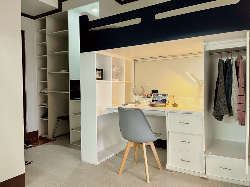 フィリピン人講師と同室で24時間英語環境が維持される「3+1英語部屋」と、生徒4名で同室の「4人部屋」。どちらも同じ構造となっており、使いやすさと機能性を両立した設計が魅力です。