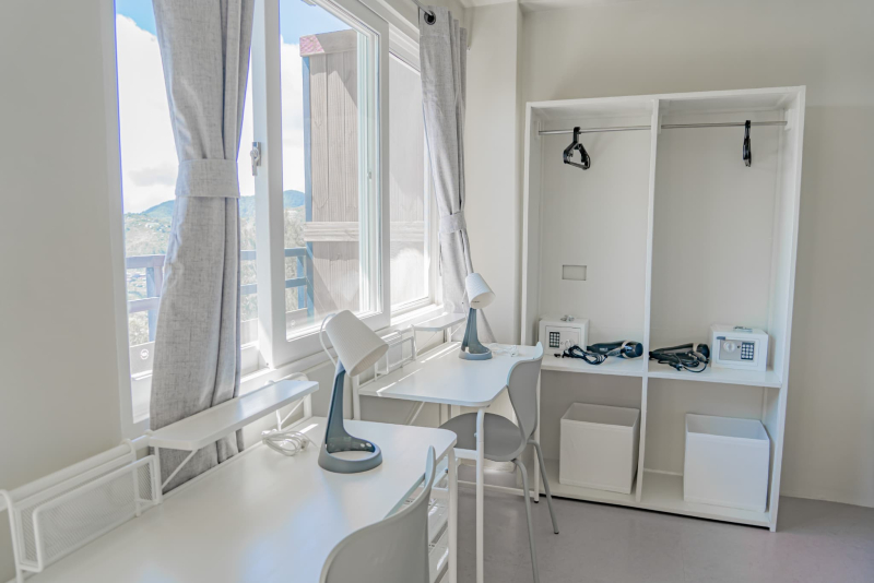 また、部屋ごとにパスワードでWi-Fi管理されており、セキュリティ面も安心。自然に囲まれた静かな環境の中、快適な寮生活で学習にも集中できます。