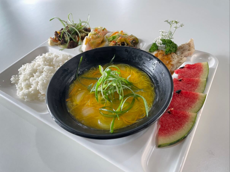 学食とは思えないビュッフェスタイルの食事は、毎日の楽しみのひとつ。栄養バランスにも配慮されています。