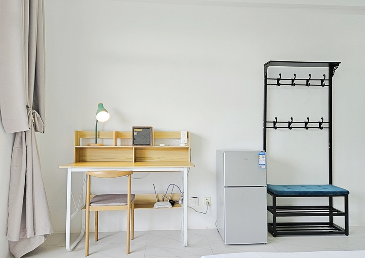 デスク、電気、ベッド、クローゼット、バスルーム、ホース付きシャワー、ドライヤー、ミニ冷蔵庫、セキュリティBOX、洋服かけ、無料Wi-fi、バルコニー(テーブル&チェア)、室外機タイプのエアコン