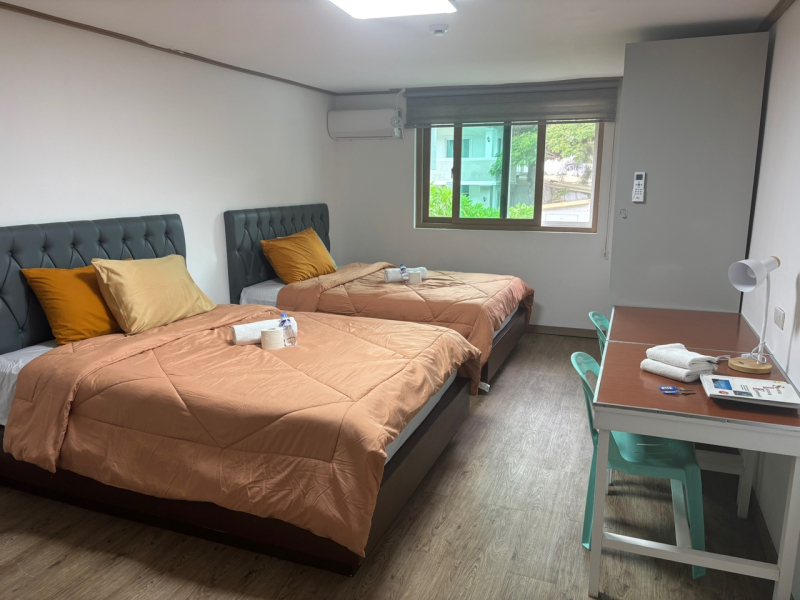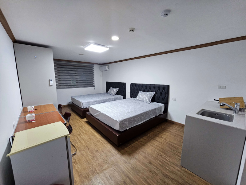 ファミリー層や快適性を重視する方におすすめの最上級タイプで、室内には簡易キッチン、日本仕様の強い水圧を備えたウォシュレットトイレ、さらにスチーム式のダニ除去システムまで完備されており、長期滞在でも自宅のように快適にお過ごしいただけます。